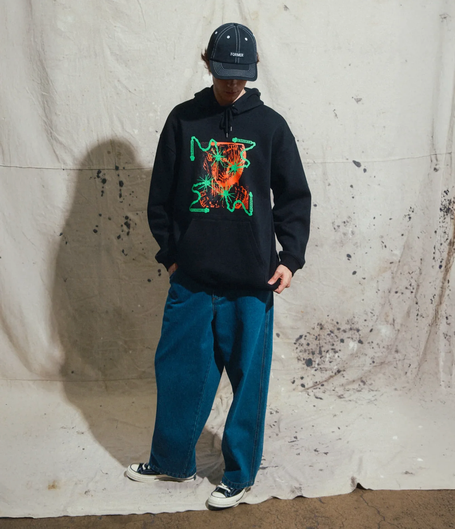 DESIGNED IN PREMIUM 320GSM COTTON FACED BRUSHED FLEECE WITH 50% COTTON 50% POLY FOR WARMTH AND COMFORT, AND DELIVERED IN OUR STANDARD FORMER HOOD FIT. FEATURING DRAWCORD CLOSURE, FRONT AND BACK GRAPHIC EMBROIDERY, PUFF PRINT & SOF HAND PLASTISOL SCREEN PRINT, FRANCHISE F TONAL EMBROIDERY ON HOOD, FRONT POCKET, AND FORMER BRANDED METAL AGLETS.