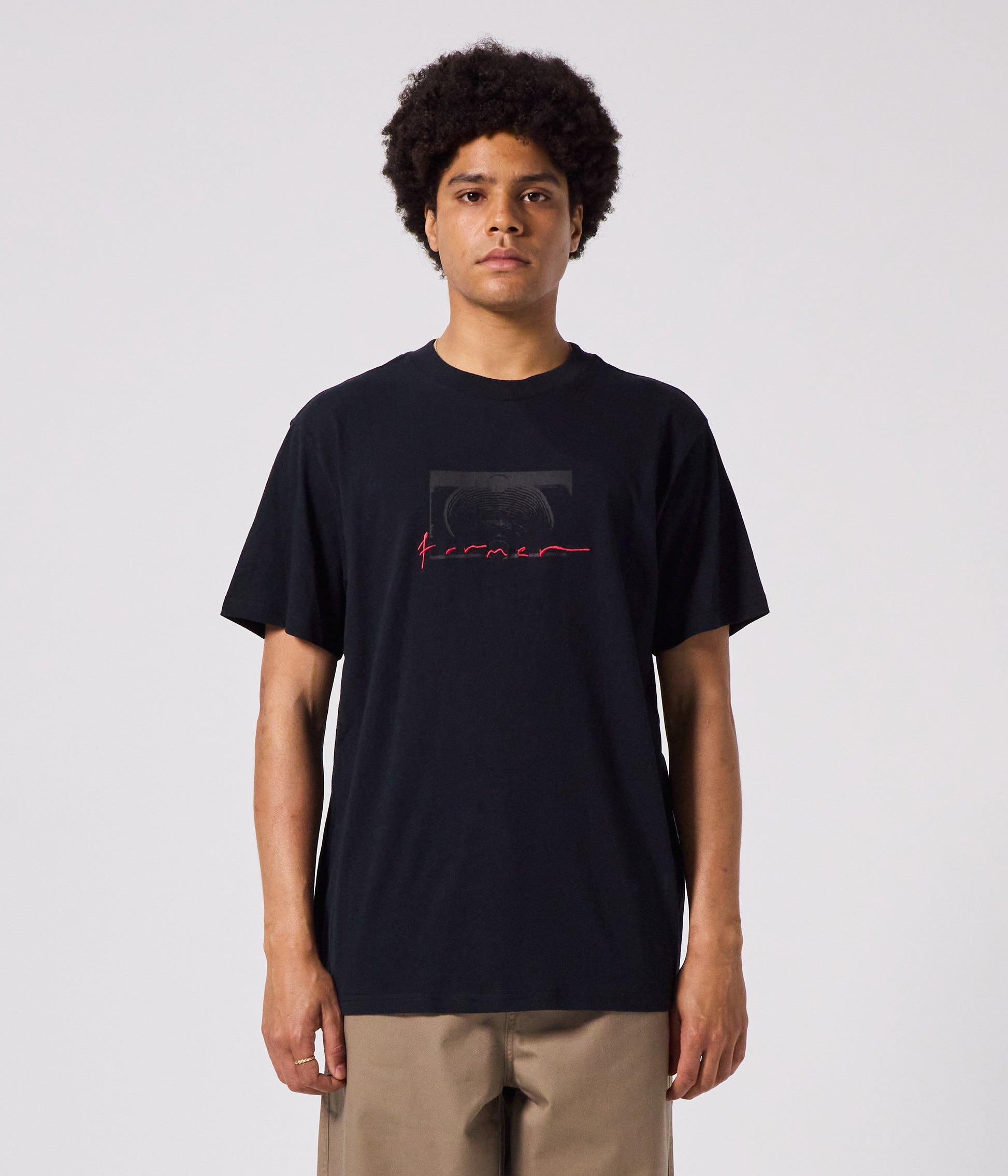 CRAFTED IN A PREMIUM 200GSM JERSEY COTTON. DELIVERED IN OUR STANDARD FORMER T-SHIRT BLOCK FOR A RELAXED AND COMFORTABLE FIT. FEATURING FRONT SCREEN PRINT COMPLEMENTED BY EMBROIDERY DETAIL.